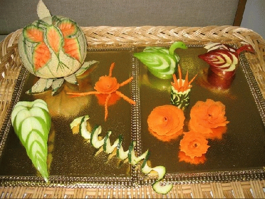 Hace unos años publique un pequeño recetario de cocina y estas son algunas de las ilustraciones del mismo. Una cesta de calabacín y zanahoria, quesos de deferentes colores, cuencos de calabacín con zanahoria, naranja en surcos y una giralda de nabo.