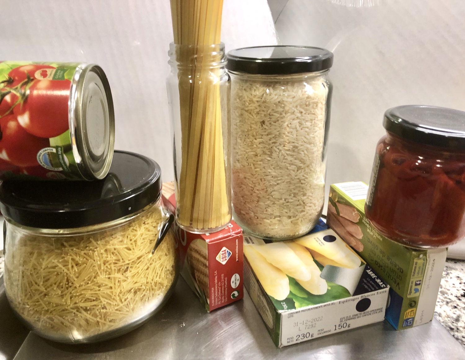 - Productos que se pueden comer directamente, legumbres verduras, hortalizas, tomate frito, pimientos asadillos, carnes y pescados como latitas de pollo, mejillones, calamares, etc.
