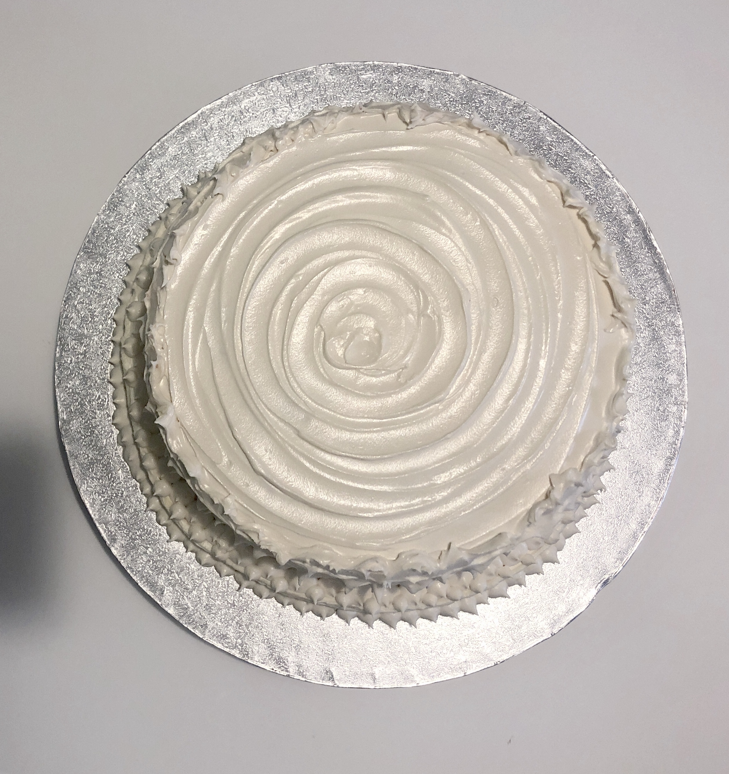 Y después, con manguera y boquilla lisa mediana, se hicieron las pequeñas pompas lisas todo alrededor de la parte baja de la tarta.