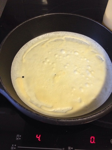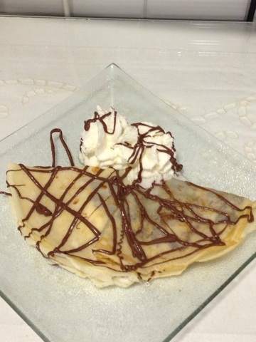 El domingo para desayunar no teníamos nada en casa, pero si tenia huevos y harina, en un momento termine haciendo una masa de crepes, es prácticamente la misma receta de las tortillas pero sin levadura y menos harina, quedo masa para hoy. Es una masa super fina y se puede rellenar de dulce o salado, te puede salvar una cena.