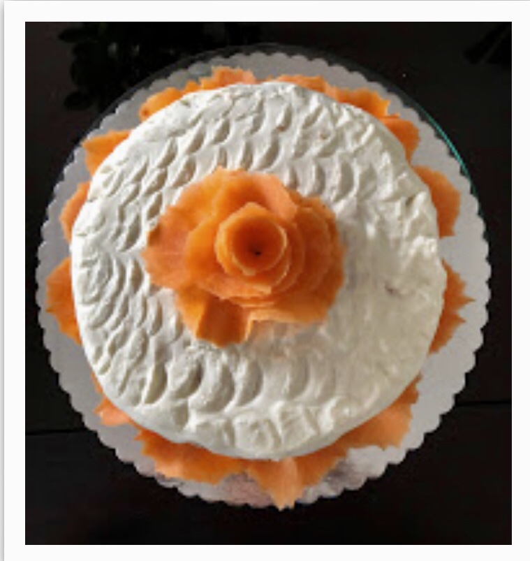 - Decoraremos con una flor y blonda hecha de zanahoria, metemos al frigorífico de 6 a 8 horas, ese será el momento de disfrutarla.