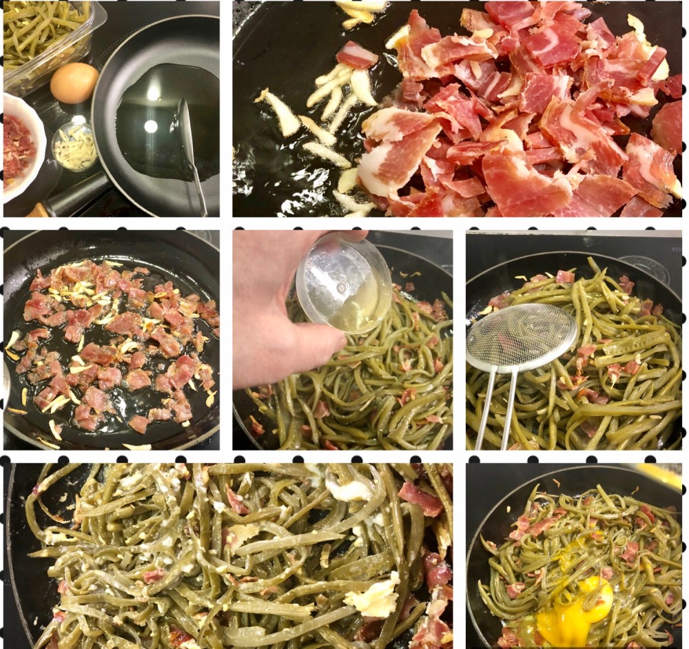 - Romper el huevo en una taza y ponerlo en las judías, apagar el fuego con el propio calor residual se cuajara lo suficiente, tienen que quedar jugosas, comprobar el punto de sal.
