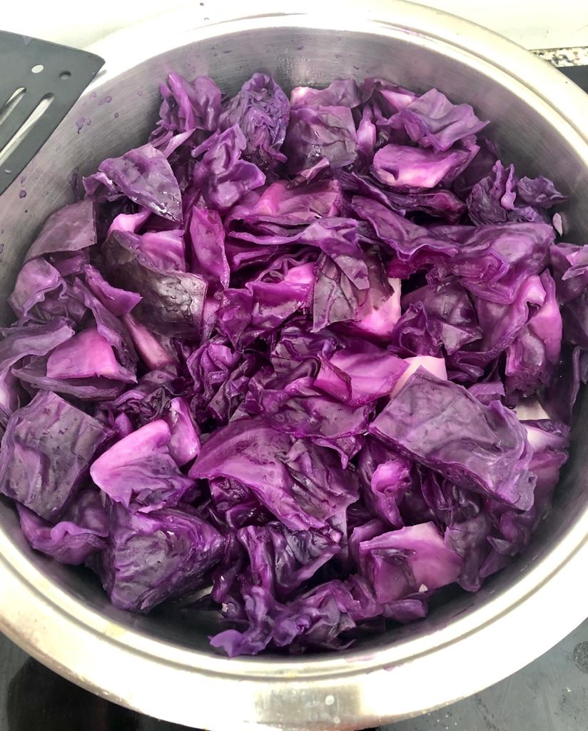 Cocer una lombarda y tenerla cocida hasta el momento de utilizar.