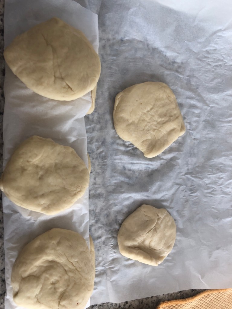 También hice una masa para pequeñas pizzas crujientes hice muchas y congele en pequeñas porciones de 30 g., cuando las necesitemos sacar, estirar muy finitas, rellenar y hornear o hacer en plancha.