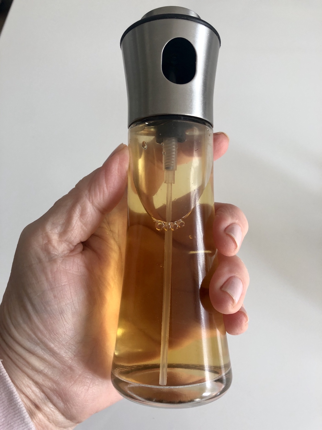 Aquí muestro una foto de 1 modelo de dosificador de aceite y vinagre que ayudan controlar y reducir el consumo de los dos en nuestros platos, también se puede tener otro con zumo de limón, colado para que la pulpa o pipos no obstruya la salida. Hoy día encontramos envasados en explay el aceite de oliva virgen extra y es otra opción según el uso y necesidad.