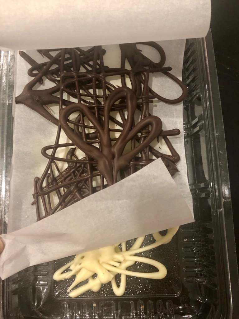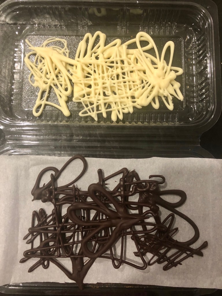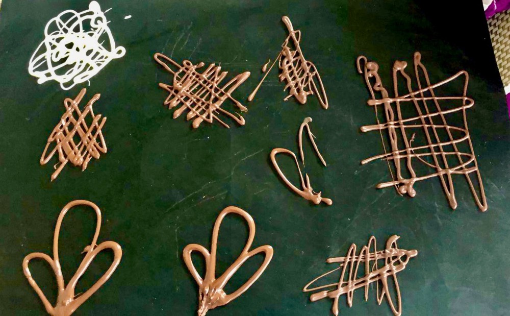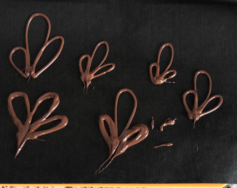 - repetir lo mismo con chocolate negro y guardarlas hasta necesitar adornar un postre.