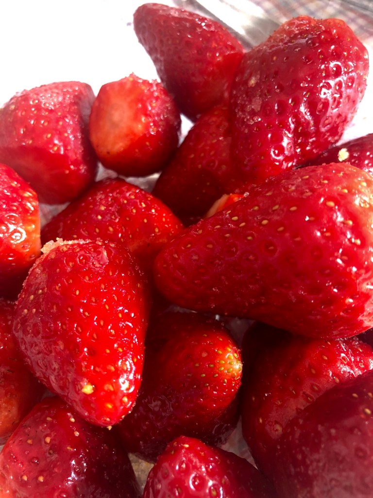 Fresas quitadas las hojas lavadas y con una cuchara de panela.