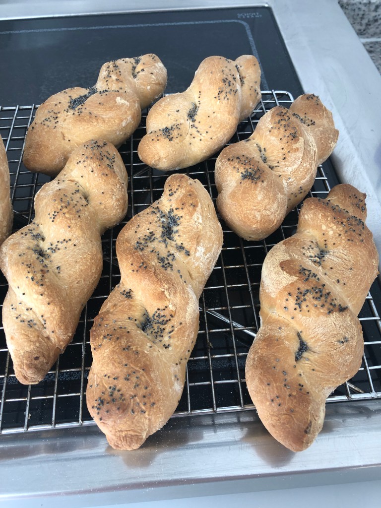 Estoy haciendo de esbelta, de centeno, solo de trigo, integral, mezclando, incluso un día hice un día para celíacos, aunque en casa no hay ninguno, con semillas de amapola, de centeno con pipas y sésamo fue el de hoy y ya tengo para unos día.