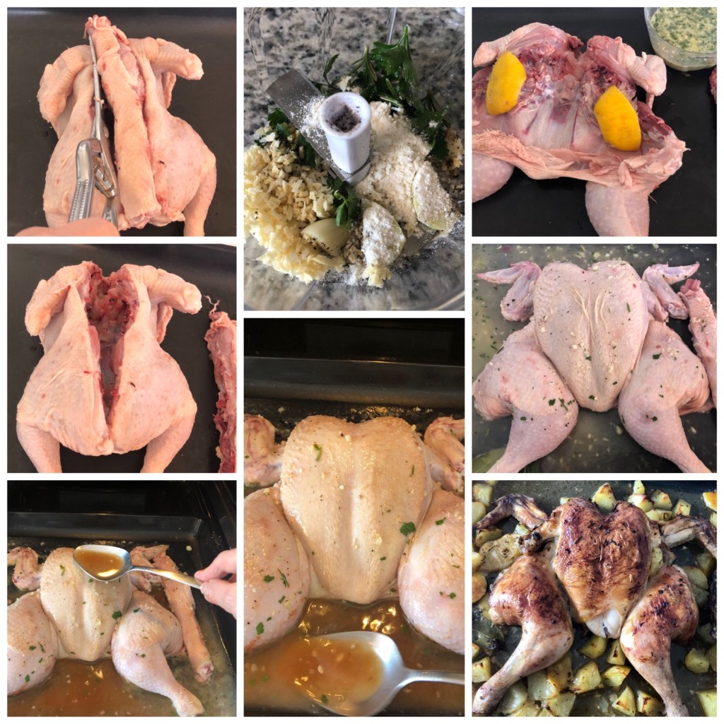 Se hace muy bien y dorado por igual, el resto de la receta es una de mis formas de hacer el pollo, lo único que en otras ocasiones lo deje entero sin cortar.