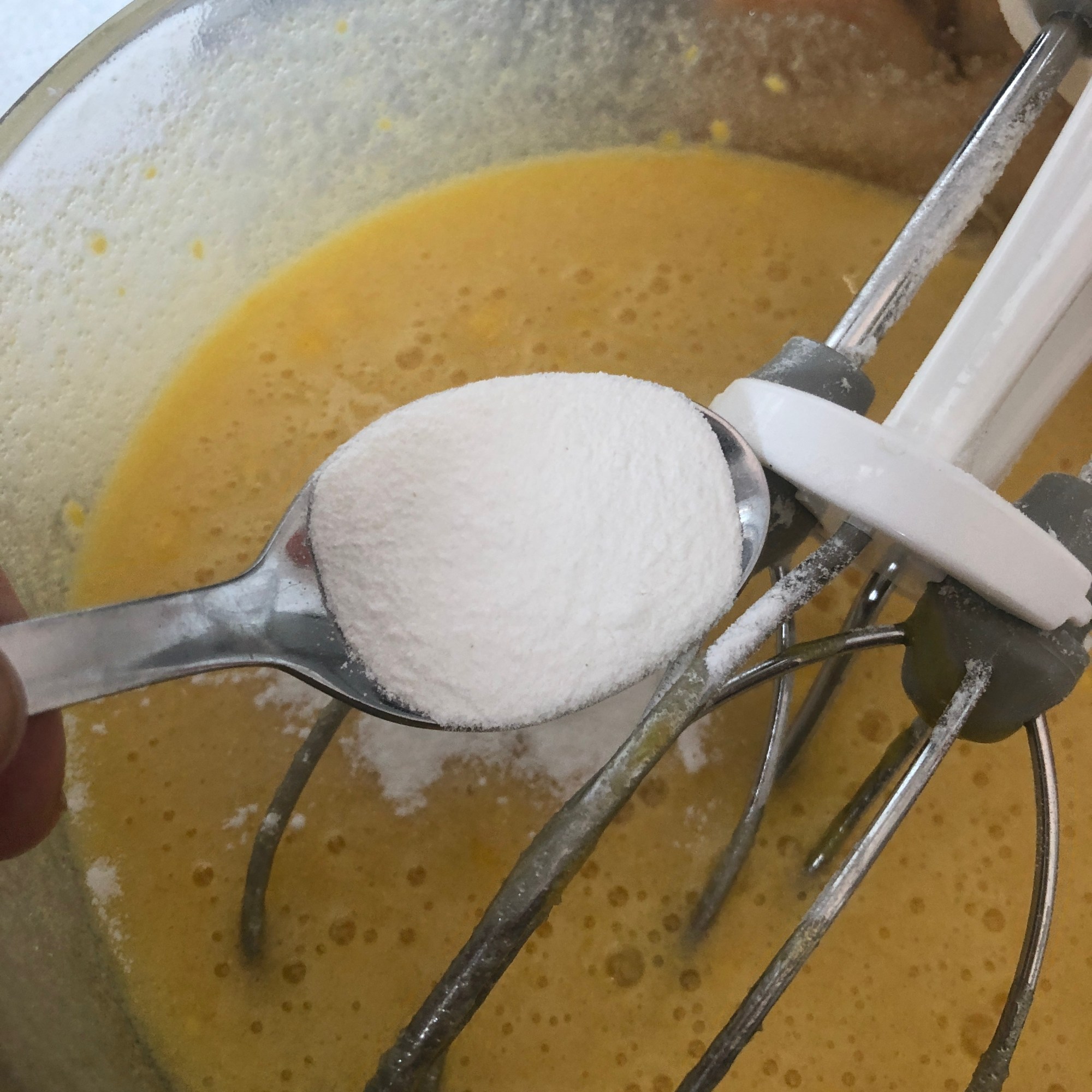 - En un bol poner los huevos con el azúcar y batir un poco.