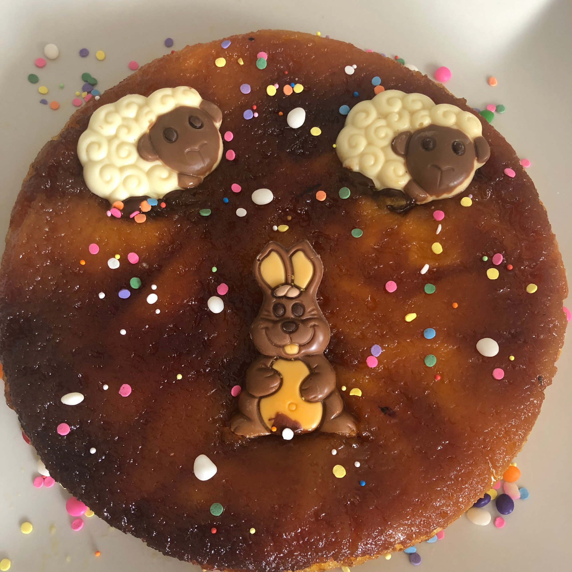 - Si no lo queréis hacer por no correr riesgos, o si no estáis acostumbrados hacerlo, se puede sustituir por caramelo liquido ya preparado, sirope, miel, mermelada de melocotón, solo es poner en la base para después desmoldar fácilmente.