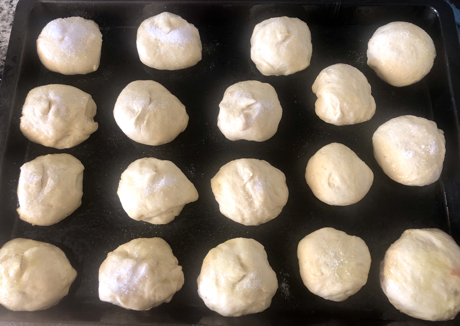 Hoy me he pasado la mañana en la cocina, pero mereció la pena, hice unos bollos rellenos para los desayunos y meriendas, además de 2 barras de pan con la receta de José Sánchez que os puse hace unos, la dejo abajo para si las queréis hacer y termine haciendo unos espaguetis carbonara, la receta esta ya publicada, hice los de sin huevo para la comida.