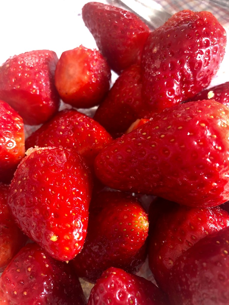 - Si lo hacéis en robot, poner el azúcar y pulverizarla, añadir las fresas y triturarlas, incorporar el resto de ingredientes hasta tener una crema.