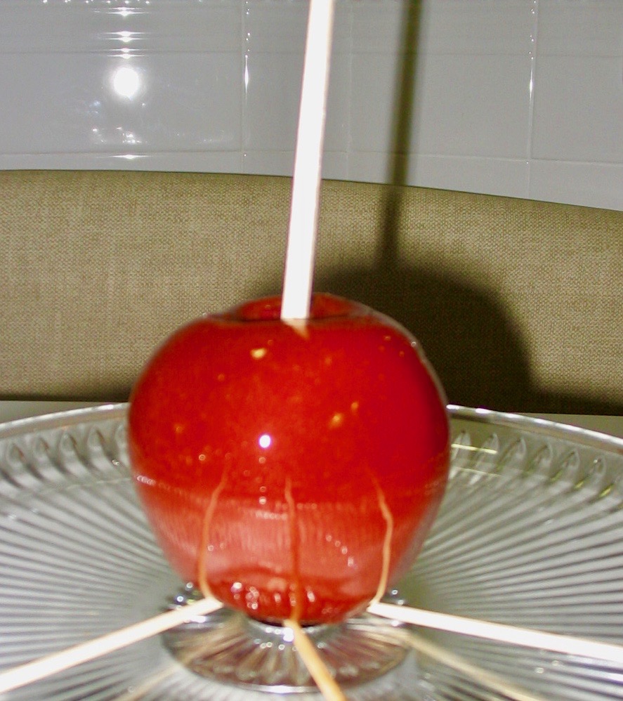 Si es la primera vez que las hacéis tomaros vuestro tiempo, todo es cogerle el punto al azúcar, que no se tueste mucho para no coger demasiado color, ni se enfríe antes de cubrir y pasar todas las manzanas por ella, es importante que queden bien cubiertas. Os sugiero tenerlo todo preparado, si fuera necesario ayudaros con una cuchara de rabo largo, poco a poco os salen perfectas. Fundir más azúcar de la necesaria ayuda mucho al principio y con la que sobra hacer piruletas de caramelo, para hacerlas poner sobre papel vegetal pequeños montones que se irán extendiendo solos o con vuestra ayuda, ponerles un palito de pieuleta y decorarlas con anises de colores, pequeñas estrellas dulces, corazones de azúcar, fideos de chocolate o de colores, dejar volar la imaginación, tendréis unos divertidos y ricos dulces.