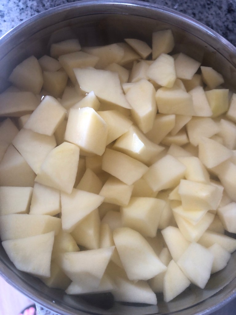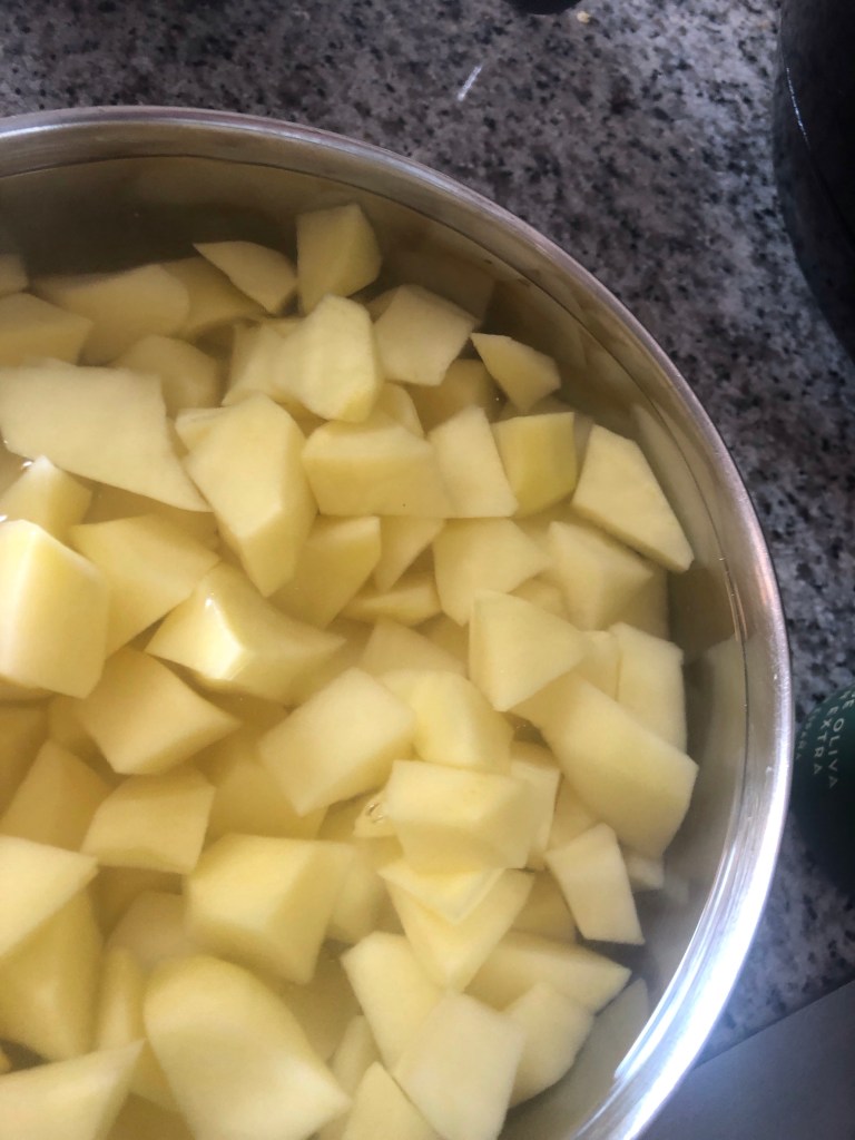 - Se elige la cantidad de patatas, una manera fácil de calcular la cantidad es 1 patata mediana por persona, el tamaño cada uno lo elige, pelarlas lavanlas enteras y cortan en triángulos, se pueden freír igualmente que las lavadas, la diferencia solo es por que se pegan más entre ellas y quedan crujientes por fuera, pero blanditas por dentro, es cuestión de gustos.