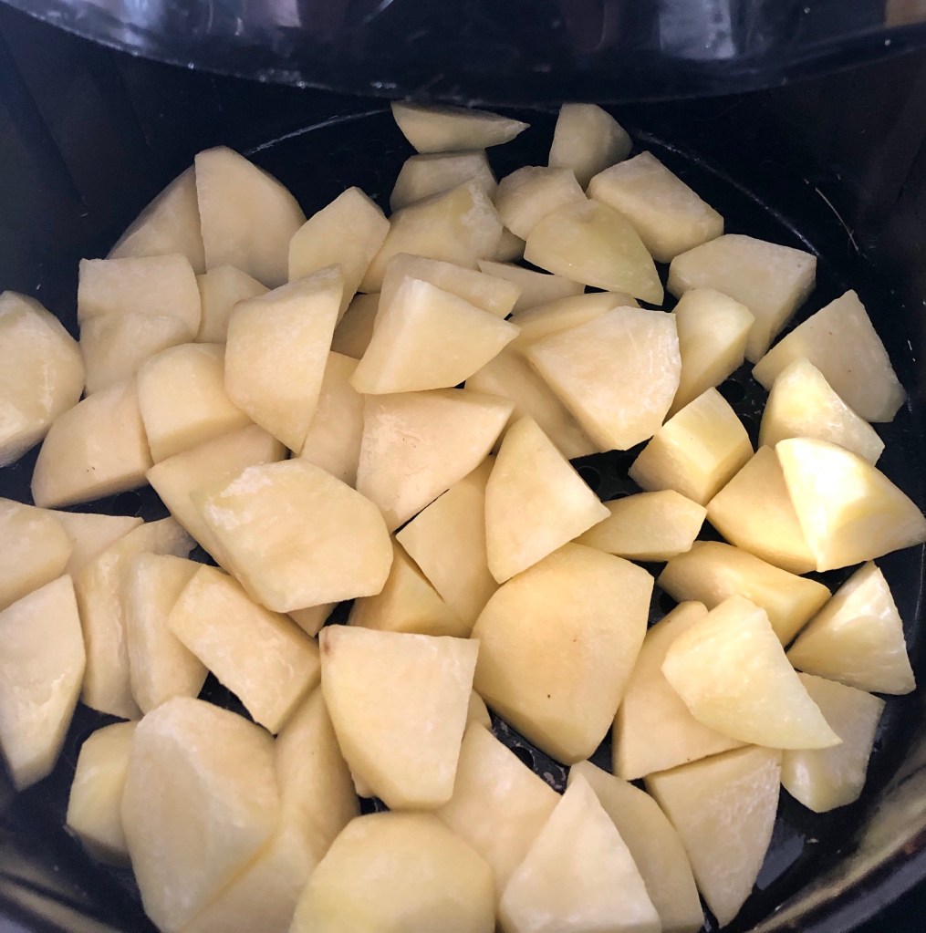 - Se rocía la maquina con aceite de spray, echar las patatas y ponerle otro poco de aceite por encima, mover bien agarrando del asa el cesto y cerrar la maquina.