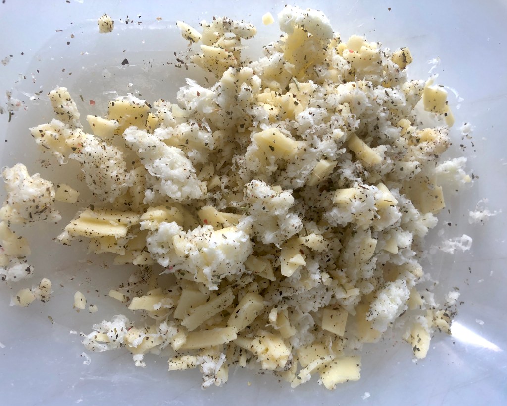 2. Mezclar con los quesos, poner un poco de sal, pimientas y hierbas provenzales.