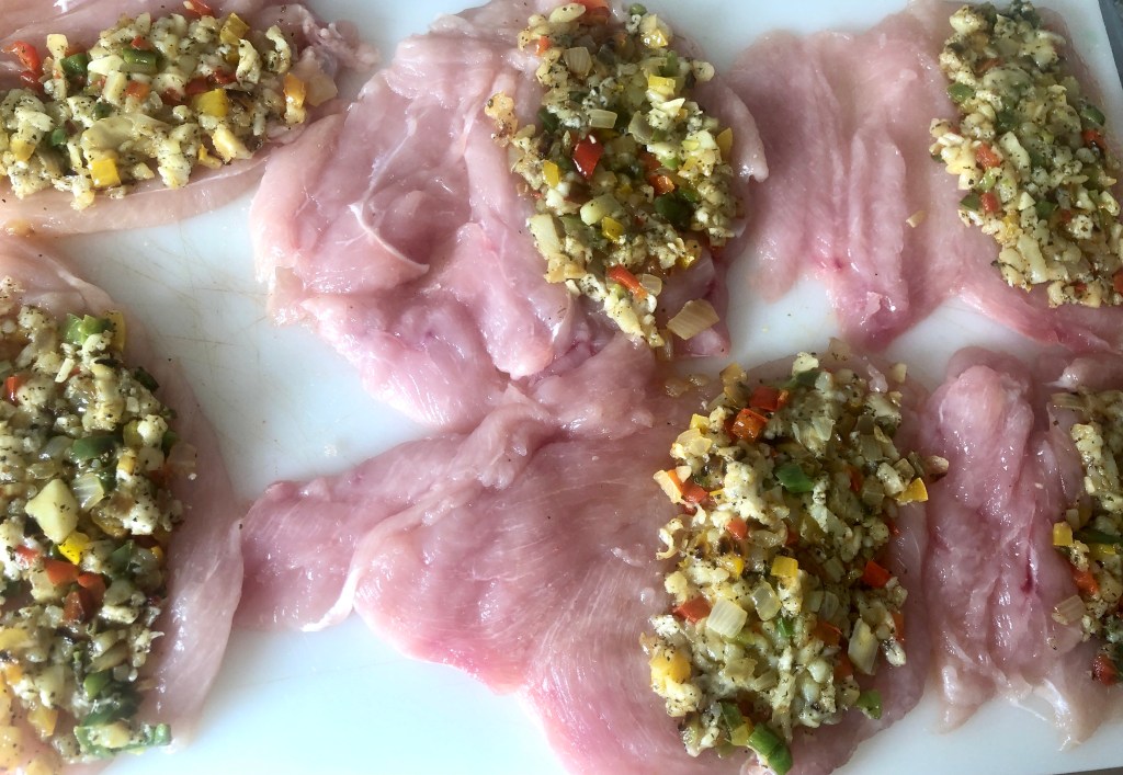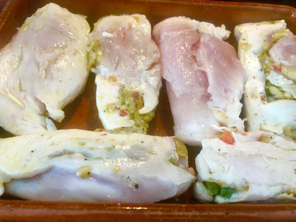 3. Rellenar las pechugas, al estar muy abiertas se hacen 6 pollitos.
