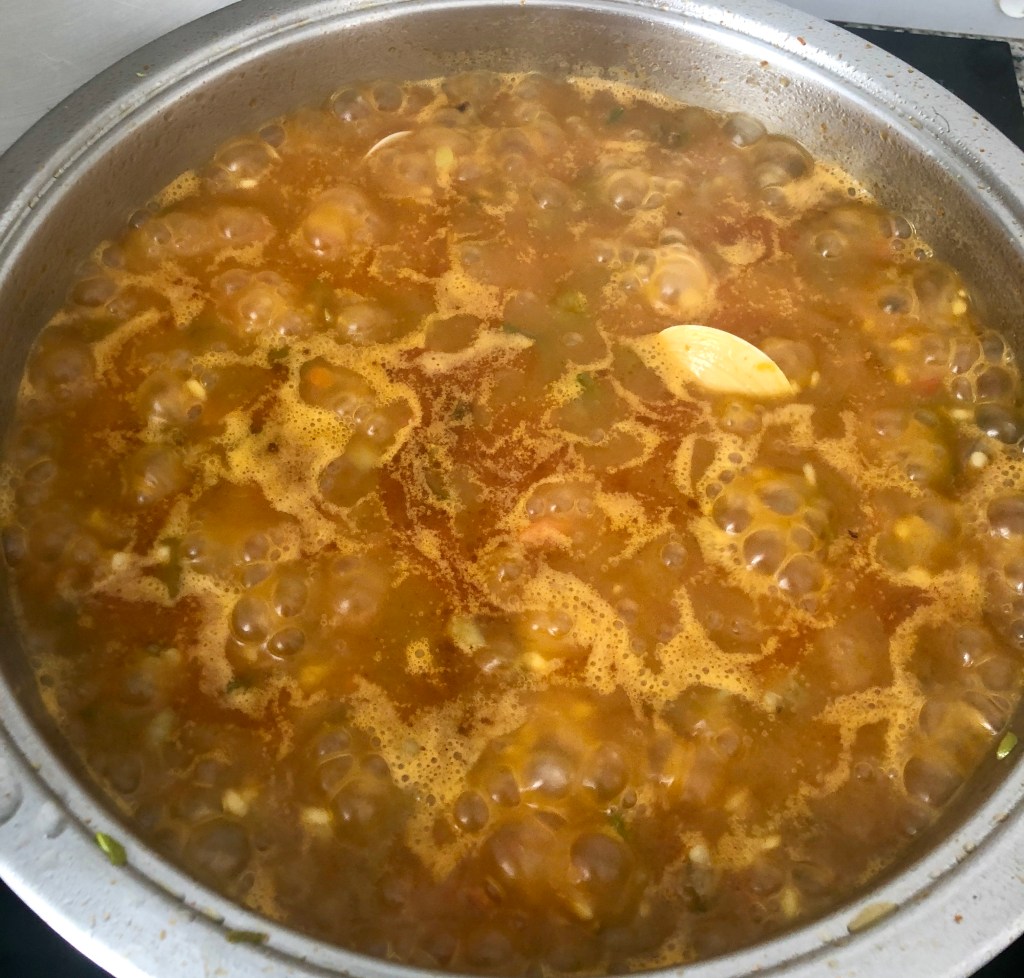 • 650 g de caldo de pescado, que lo tendremos congelado por previsión, ( si no se tiene caldo, poner el agua a hervir con una pastilla de caldo de paella, en ese caso reducir la sal en el arroz).