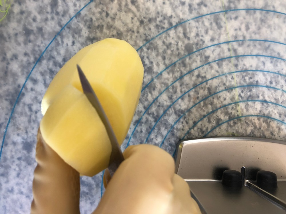 Forma de hacerlo: Una vez peladas y lavadas, se les hace un corte con el cuchillo sin llegar al fondo, se tira del trozo y notaremos un pequeño chasquido, quedando un corte irregular, esto hace que ellas en el transcurso de la cocción suelten mejor el almidón que tienen dentro, este es un espesante natural que ayudará a espesar y enriquecer nuestros guisos.