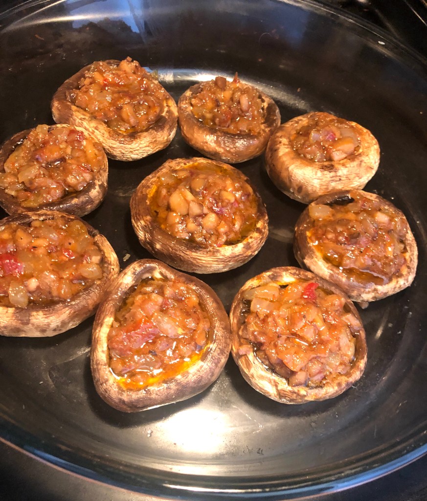 En esta ocasión unos champiñones rellenos, utilizando los pimientos confitados, una receta para sorprender a nuestros invitados.