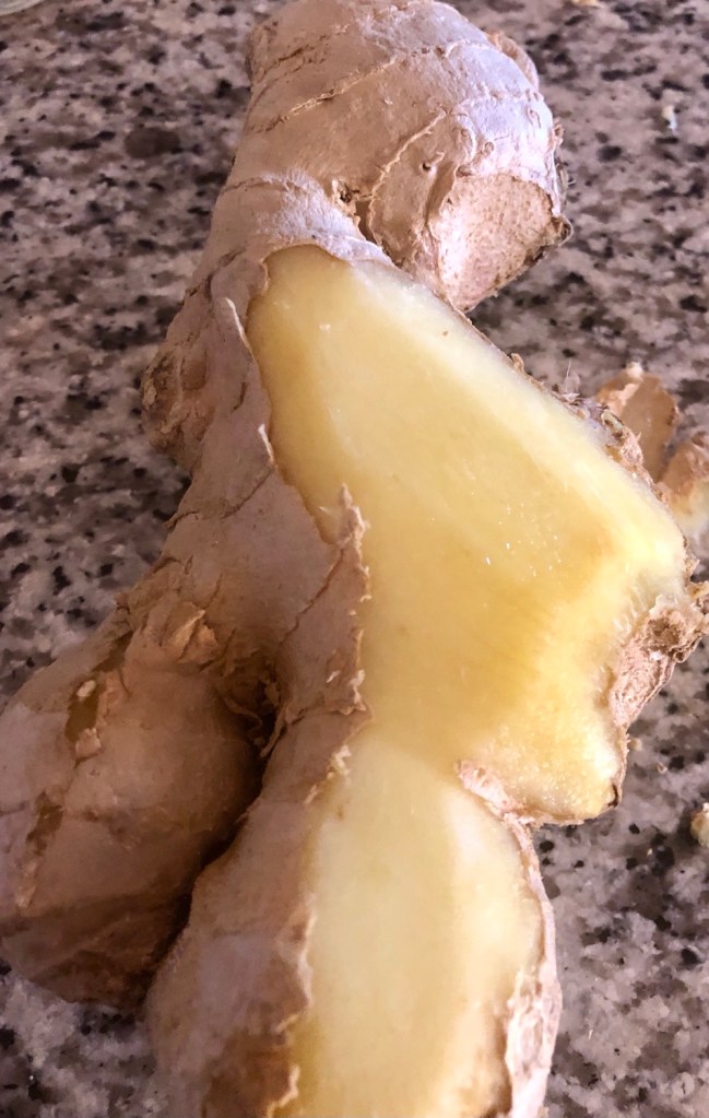 - 115 g de jengibre, es 1 raíz en esta ocasión de tamaño medio, hay que pelarla bien, lavarla y cortarla en trozos finos, tiras, formas , estrellas, lunas, hojas, ( cortado fino es mas fácil de confitar).