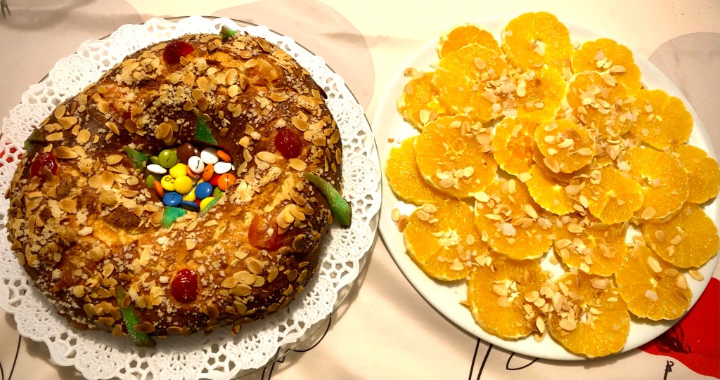Anoche en nuestra cena el postre fue unas naranjas preparadas y roscón.