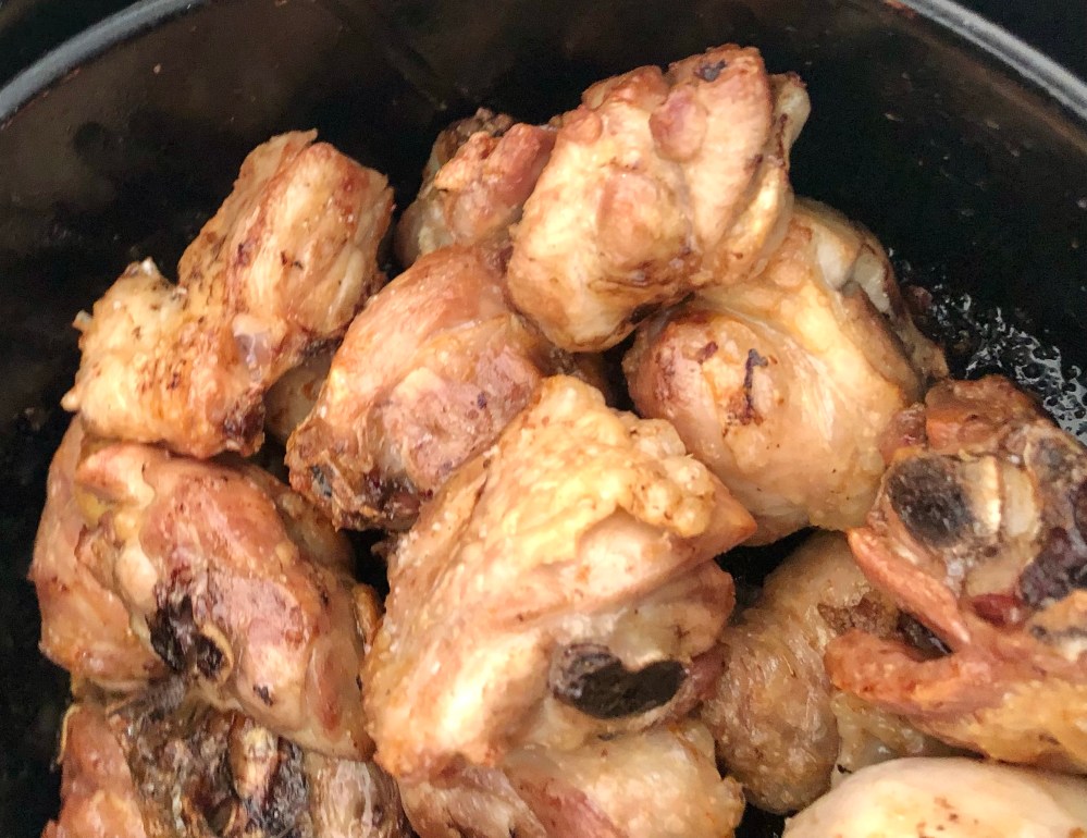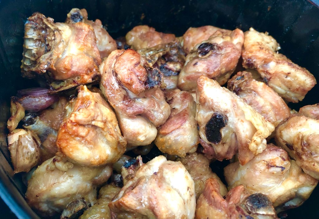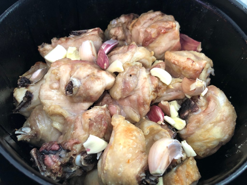 El pollo hecho en freidora por aire tiene muchas posibilidades y siempre queda bien. En esta ocasión, el típico pollo al ajillo qué haríamos en aceite, se va a hacer con su grasa, sin añadir aceite y perdiendo parte de esa grasa.