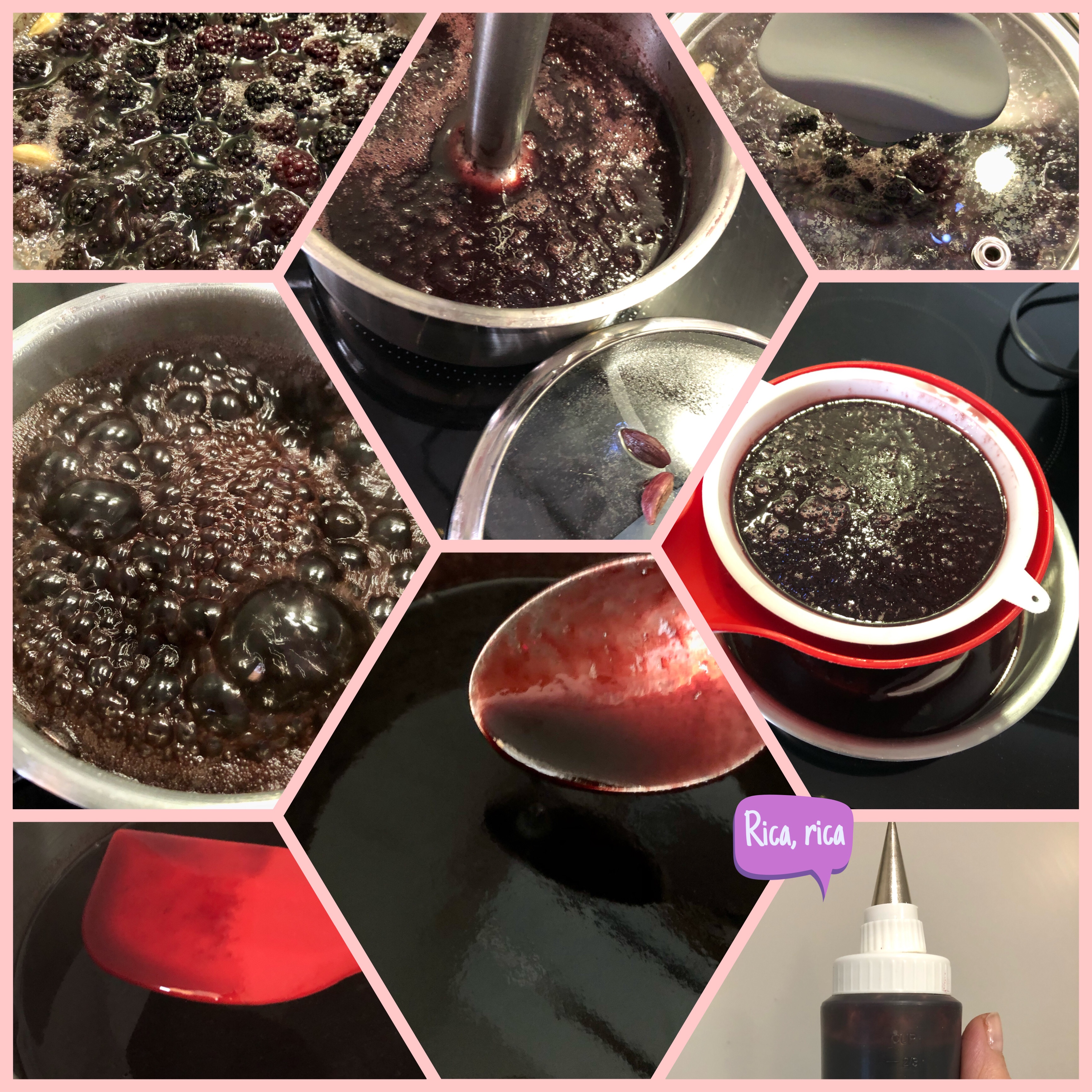 Una salsa hecha de moras de zarza recogidas en verano en plena naturaleza, las congeló para tener todo el año y utilizarlas en tartas yogures, helados, hacer mermelada etc.