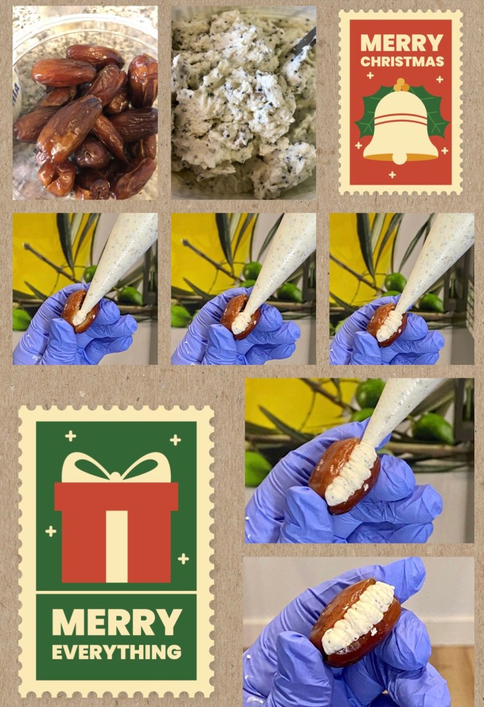 - Rellenar los dátiles, ir colocándolos en un plato, rociar por encima con el resto de semilla de amapola y presentar.