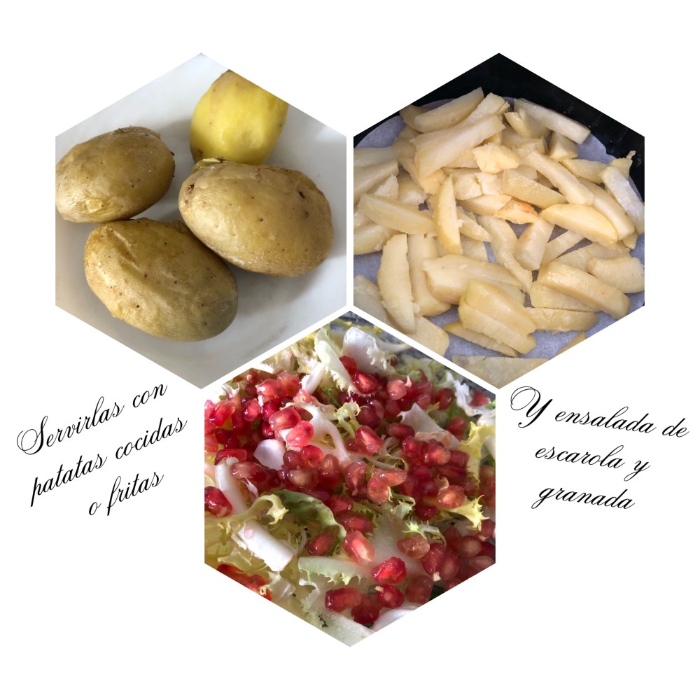 Sacarlas y servirlas con patatas fritas o cocidas, además de una ensalada de escarola y granada.