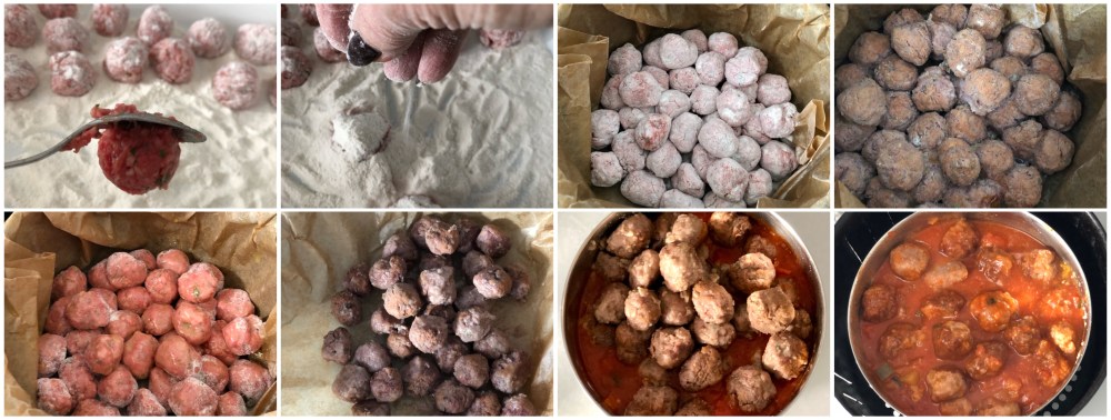 Unas albóndigas fáciles de hacer, rebozadas con harina de arroz para las personas que no puedan tomar harina de trigo y en lugar de salsa con pisto casero, puede ser comprado ya preparado, en media hora listas para ir a la mesa.
