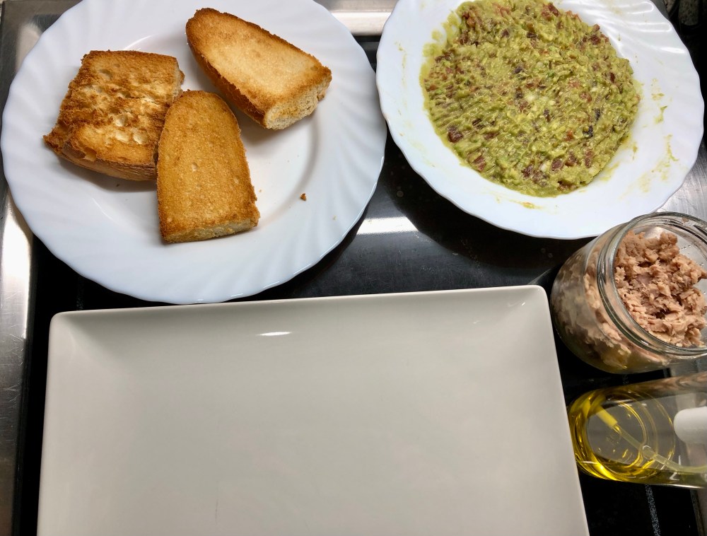 - Montar la rebanadas de pan colocando primero una base de la mezcla con aguacate, poner por encima el atún desmigado, rociar con aceite de oliva y con semillas de amapola por encima, es una forma de presentación.