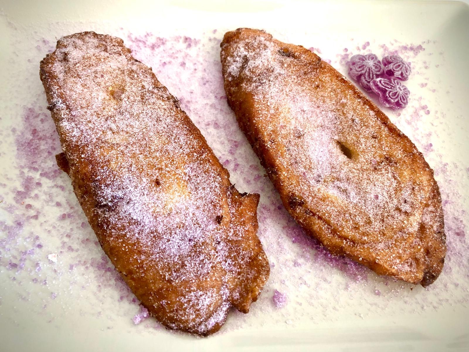 Una variedad ideal y muy rica para los amantes a los caramelos de violetas: pulverizar unos caramelos de violetas y espolvorearlos por encima de las torrijas en lugar de azúcar y canela. Se pueden hacer unas pocas de cada manera y que cada uno elija a su gusto.