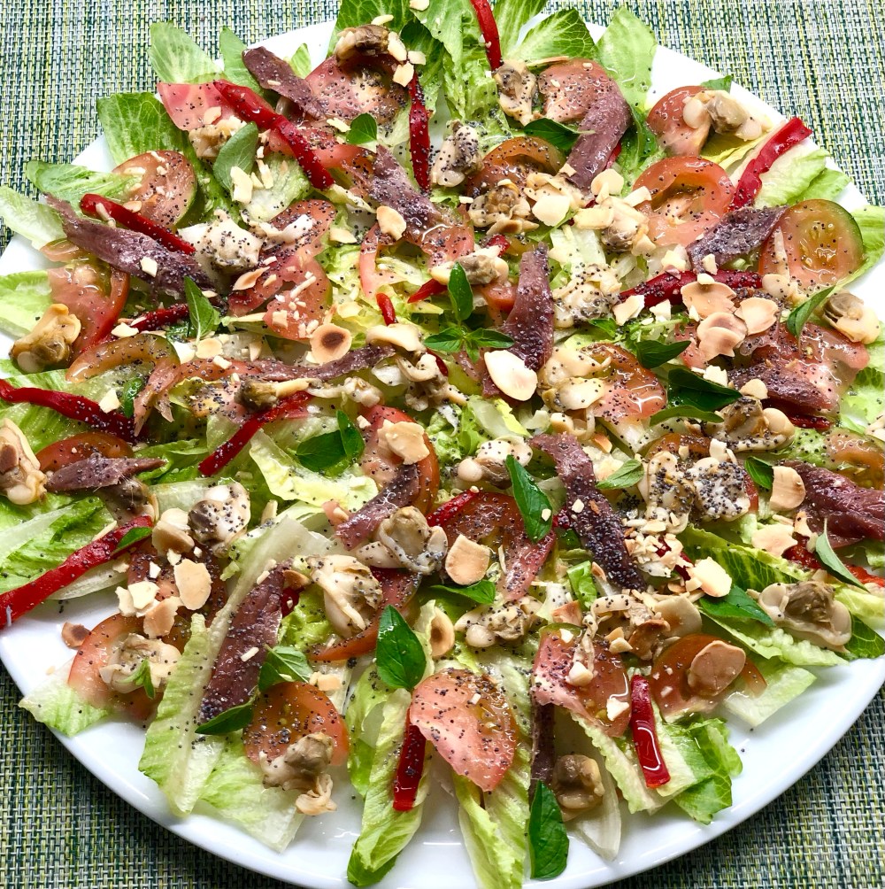Este tipo de ensaladas son frescas y muy completas, se pueden preparar en un momento, siempre que se tengan los vegetales frescos en casa. Las conservas: pimiento, anchoas, semillas, almendras, etc., son productos que siempre os sugiero de almacenaje o frigorífico y por ello previsibles.