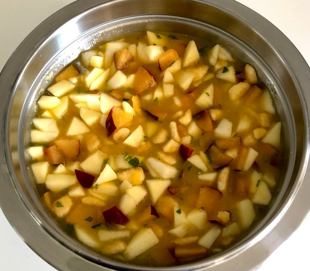 - Pelar y trocear la pera, la manzana y ciruelas.