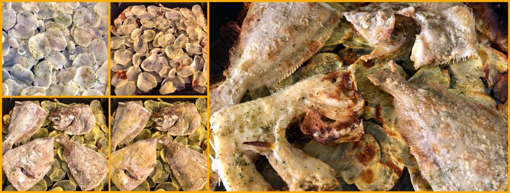 - Colocar encima bien, extendidas las patatas que harÔn de cama, ponerles un poco de sal y perejil, rociar con parte del vino y pulverizarlas con aceite, llevarlas al horno precalentado a 210°, hacerlas 10 ó 12 min.
