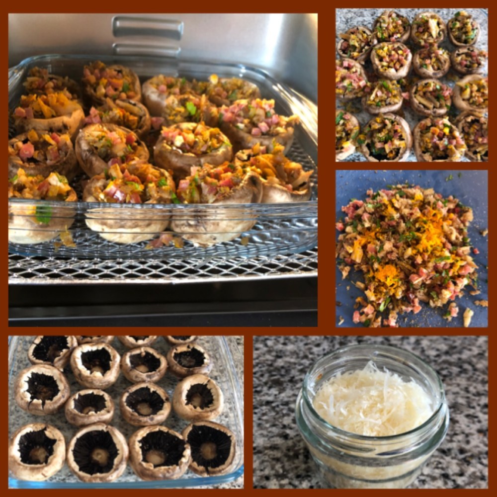 En esta ocasión están hechos en horno freidora de aire, pero se pueden hacer también en horno tradicional y más o menos serían los mismos tiempos y la misma temperatura con la diferencia que el horno tradicional hay que precalentarlo antes de poner en él los champiñones.