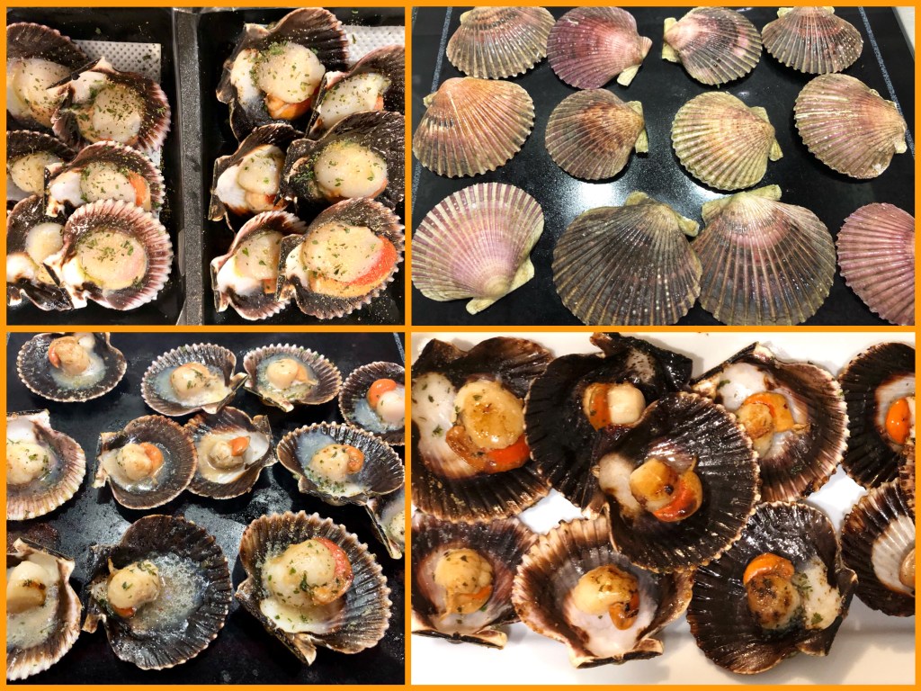 - Mientras se calienta, aliñar las vieiras con ajo, perejil, sal y rociar con aceite de oliva.