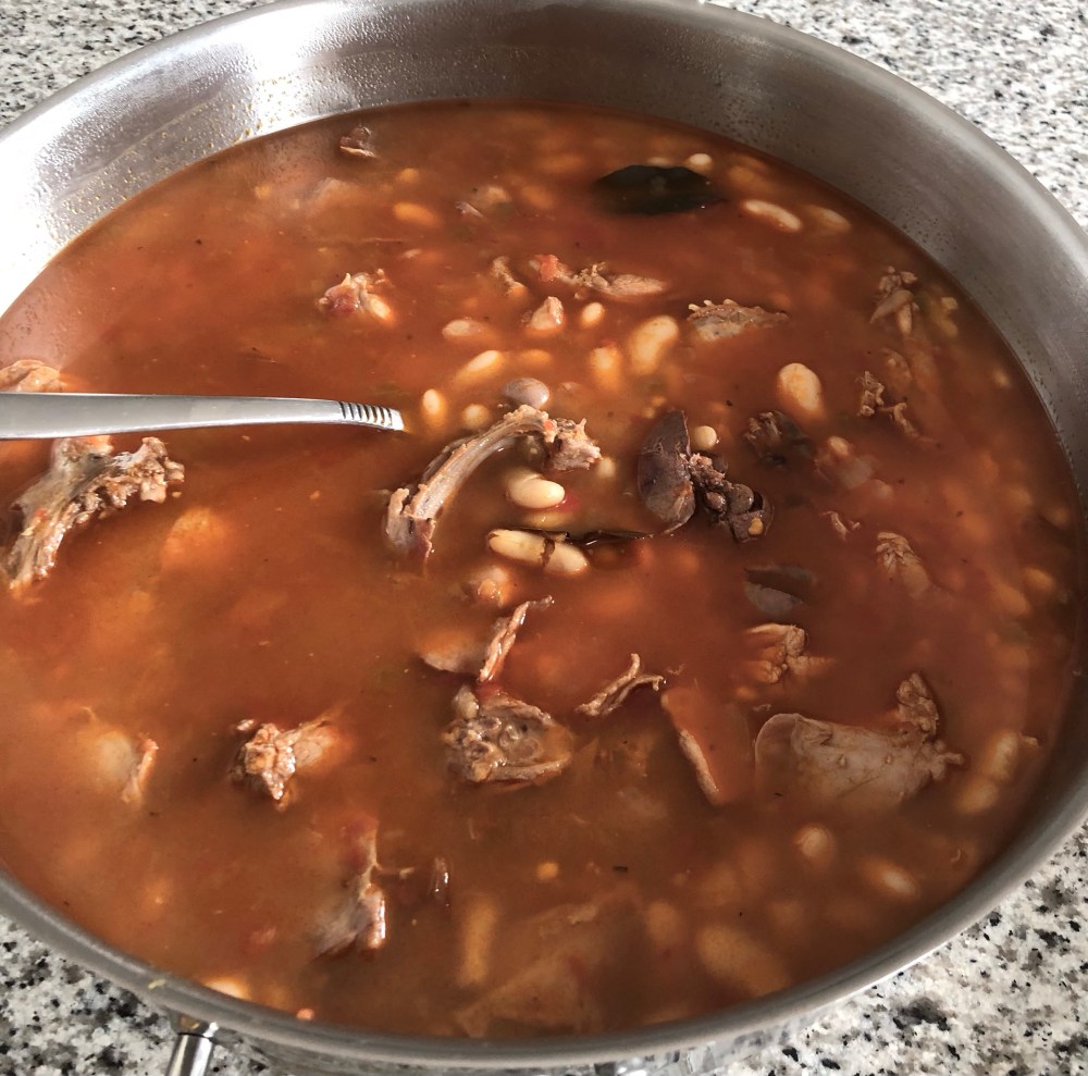 - Bajar a fuego medio bajo y tapar, dejar cocer 40 ó 50 min., hasta que el conejo y las judías estén hechos.