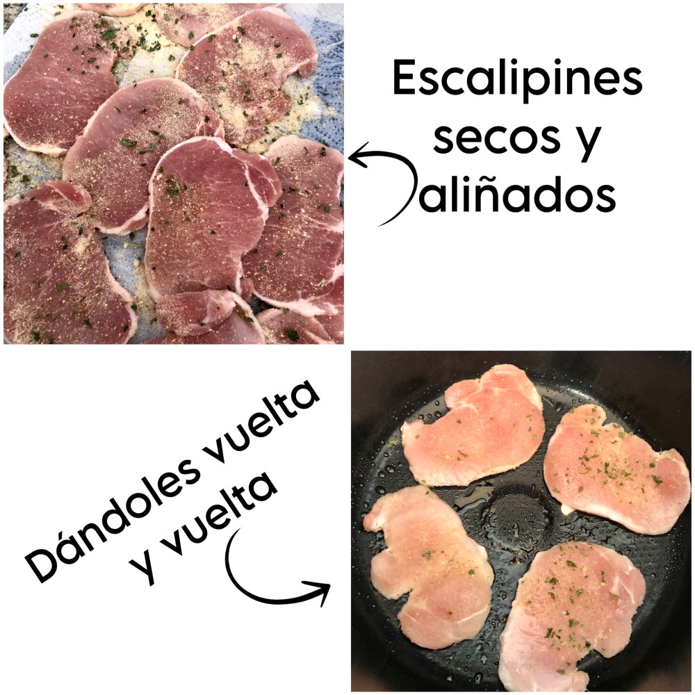 - 600 g aproximadamente, 16 o 18 escalopines finos finos de cerdo.