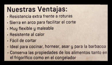 - El lado brillante aísla del calor y del frío. Si se desea mantener la temperatura del alimento el mayor tiempo posible aislado de las variaciones, se debe envolver en contacto con la parte opaca y la brillante hacia fuera, ejemplo: para llevar comida al trabajo, picnig, etc.