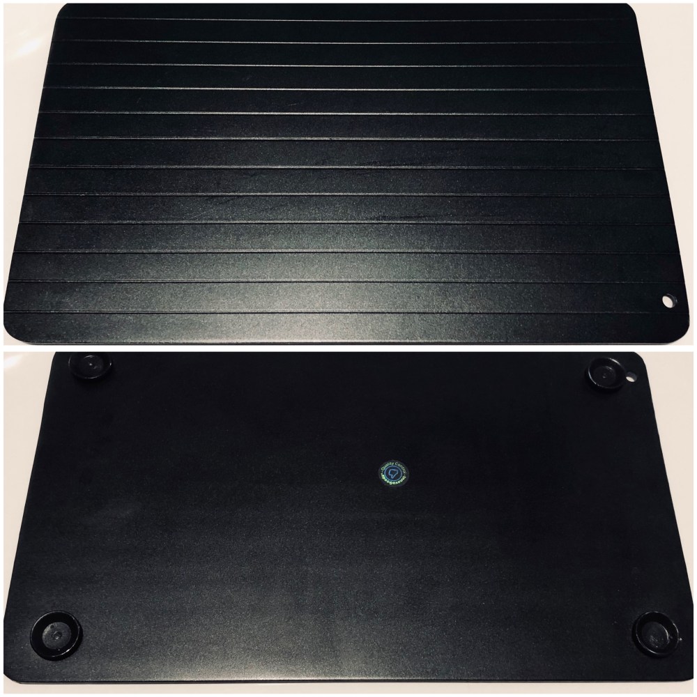 En la descripción indica: placa de descongelación rápida, método natural y antibacteriano, sin electricidad ni microondas.