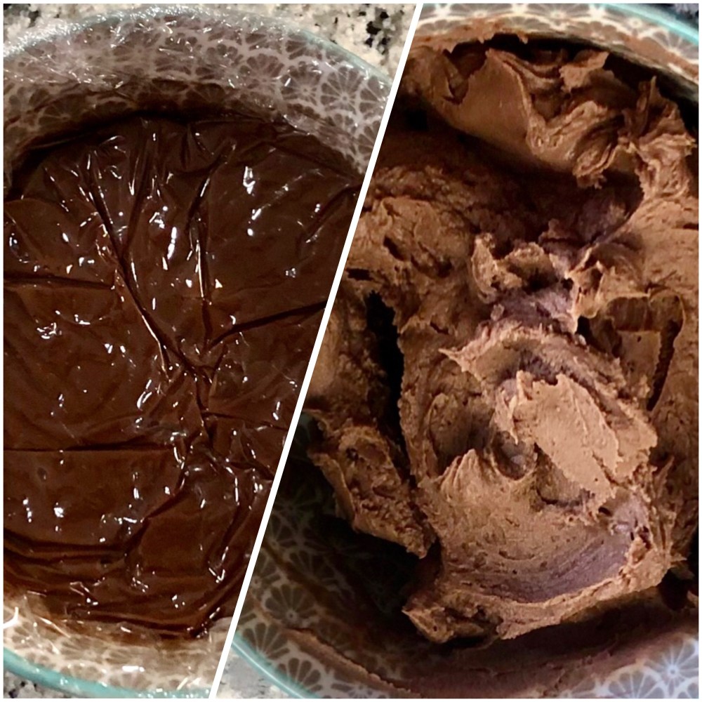 - Apagar y retirar del fuego, dar vueltas hasta que el chocolate esté totalmente fundido y se convierta en una brillante crema de chocolate.