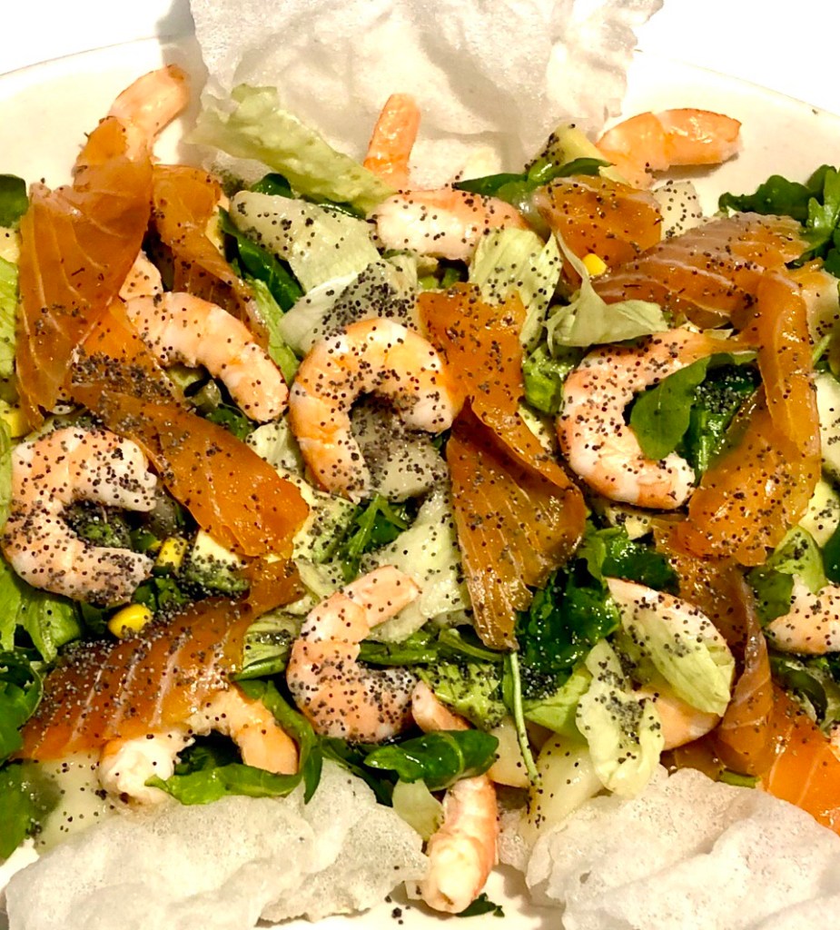 Una ensalada en la que unimos una serie de ingredientes que la hacen diferente y fresca, acompañada de unas ligeras obleas de arroz, recién preparadas, que añaden una textura única. Esta mezcla no solo sorprende al paladar, sino que también brinda un festín visual, ideal para aquellos que buscan una opción saludable y deliciosa en su mesa.