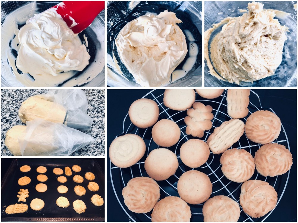 - Poner la masa en 2 mangas pasteleras con boquilla lisa y rizada, dejar en el frigorรญfico 20 o 30 min. ( la masa frรญa ayuda a que las pastas no pierdan la forma al hornearse)