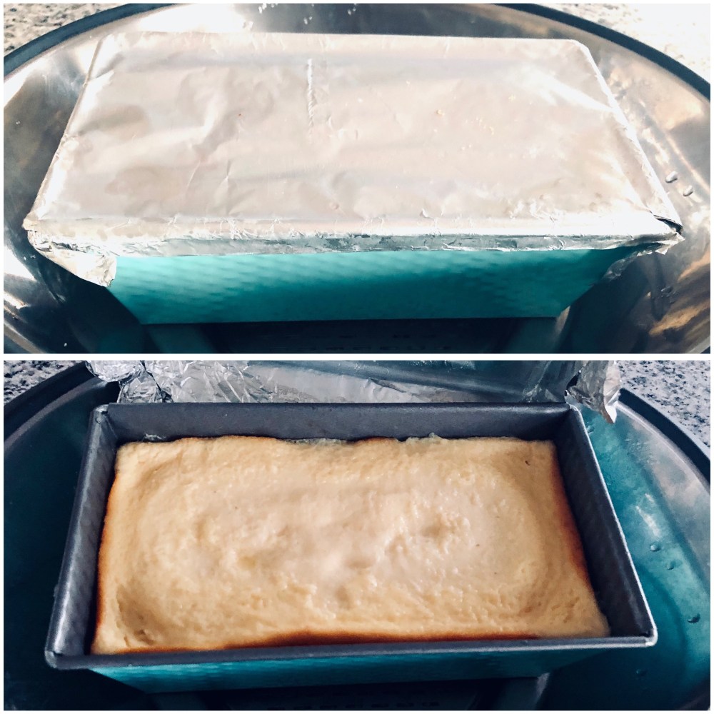 - Echar lo batido en el molde reservado con el caramelo y sellarlo bien con papel albal, para que no le entre agua.