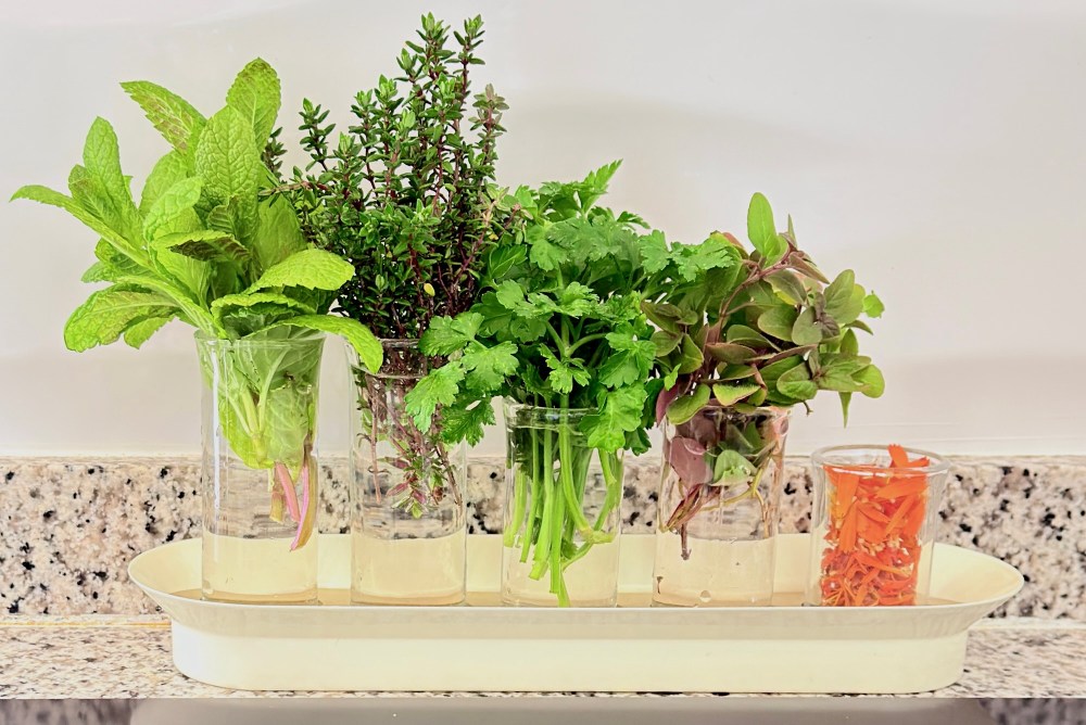 Os quiero enseรฑar mis hierbas aromรกticas, para que veรกis que un pequeรฑo gesto puede llenar vuestras cocina de color, aroma y frescura: Con un recipiente, con unas pequeรฑas pipetas de cristal y simplemente con agua fresca cambiรกndola cada poco tiempo, es suficiente para tener siempre a mano tus hierbas favoritas. ๐ฟ
